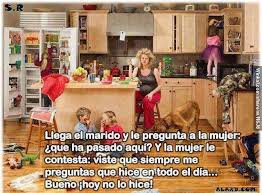 Cuando salimos de casa para hacer tramites o para trabajar o ir al medico y volvemos a casa, la casa esta mas que patas para arriba, nada se ha hecho y si se ha hecho se ha hecho de forma tal que nosotras sintamos que no era el DEBER de quien lo hizo,hacerlo...